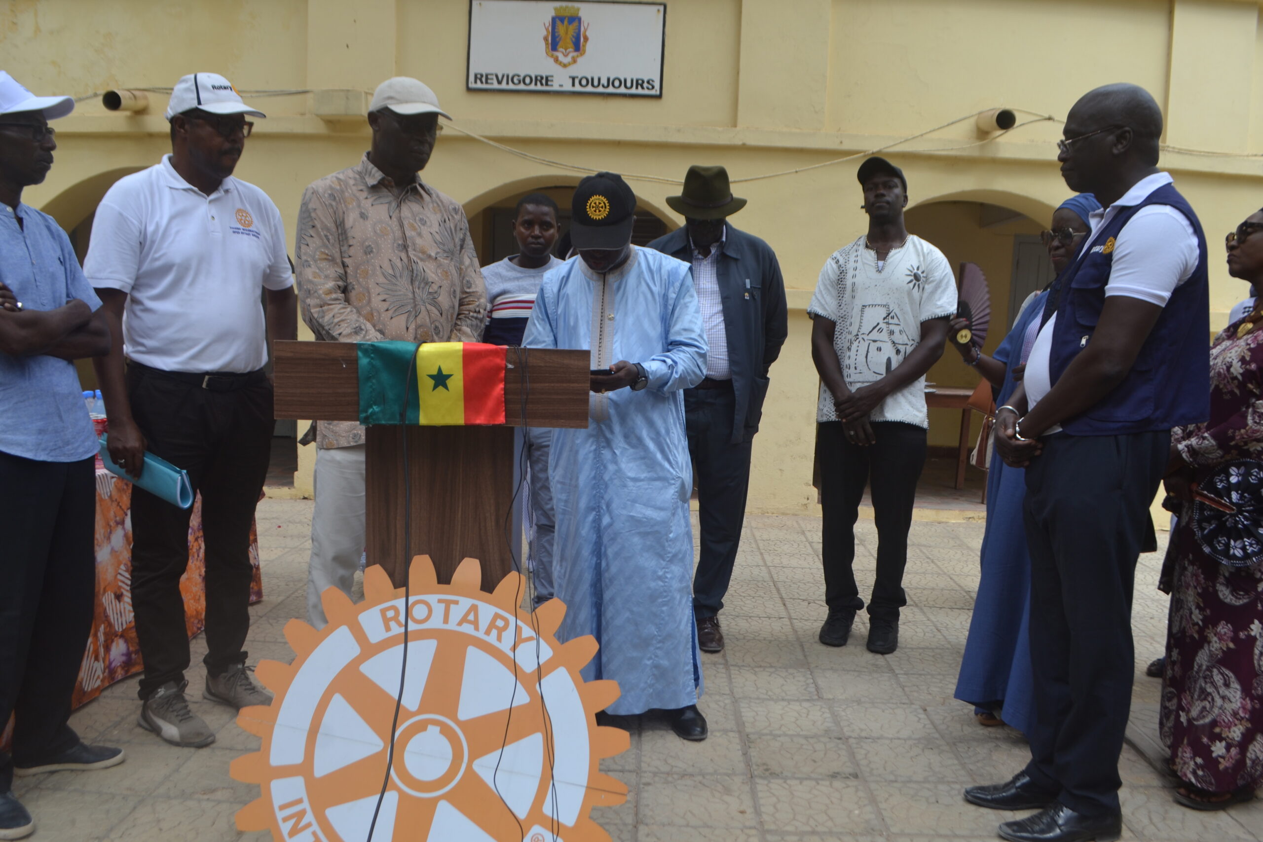 À la suite du dévoilement des plaques, il s’en était suivi les discours de Monsieur Aristide Tino Adediran gouverneur de Rotary Clubs international, représentant du Président M. Abdoulaye Sanogo et celui du Maire de Gorée, Me Augustion Senghor qui avait d’ailleurs remis un diplôme d’ambassadeur de Gorée à M. Tino.