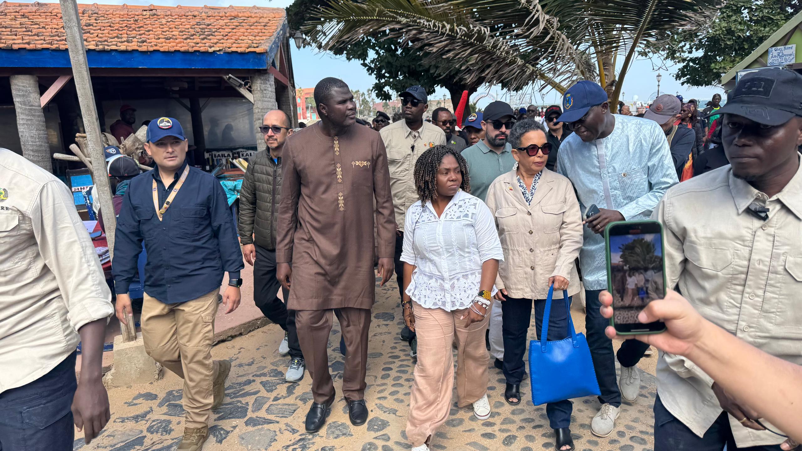 La visite a débuté par une photo de famille sur la place Nelson Mandela, à proximité du Cœur de Gorée, avant un tour de l’île marqué par un accueil populaire, festif et rythmé. Sensible à l’ambiance culturelle locale, la Vice-Présidente colombienne n’a pas manqué d’esquisser quelques pas de danse au son des tam-tams, témoignant de la convivialité et de la richesse culturelle de Gorée.
